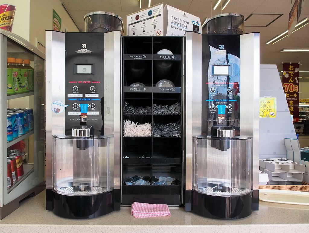 咖啡機是自助式的,買了裝有冰塊的咖啡杯,結了帳就到這來自己按下咖啡按鈕