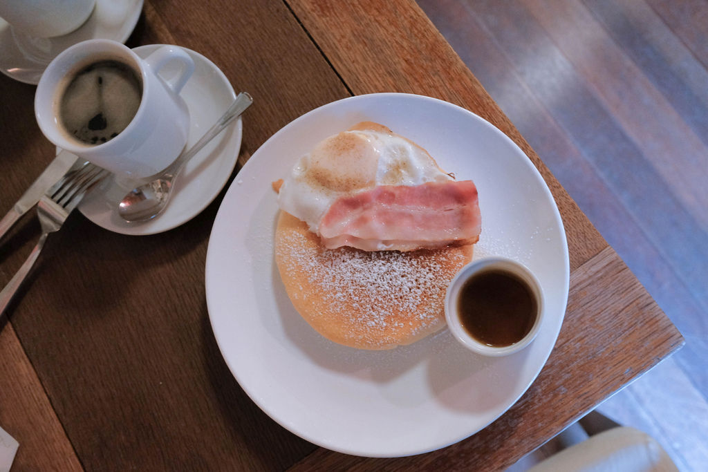 日式鬆餅加上培根蛋的套餐,給了蜂蜜糖漿,撇開崇洋媚外的觀念我必需老實說,這鬆餅真的好吃,甜鹹的搭配真的很剛好。