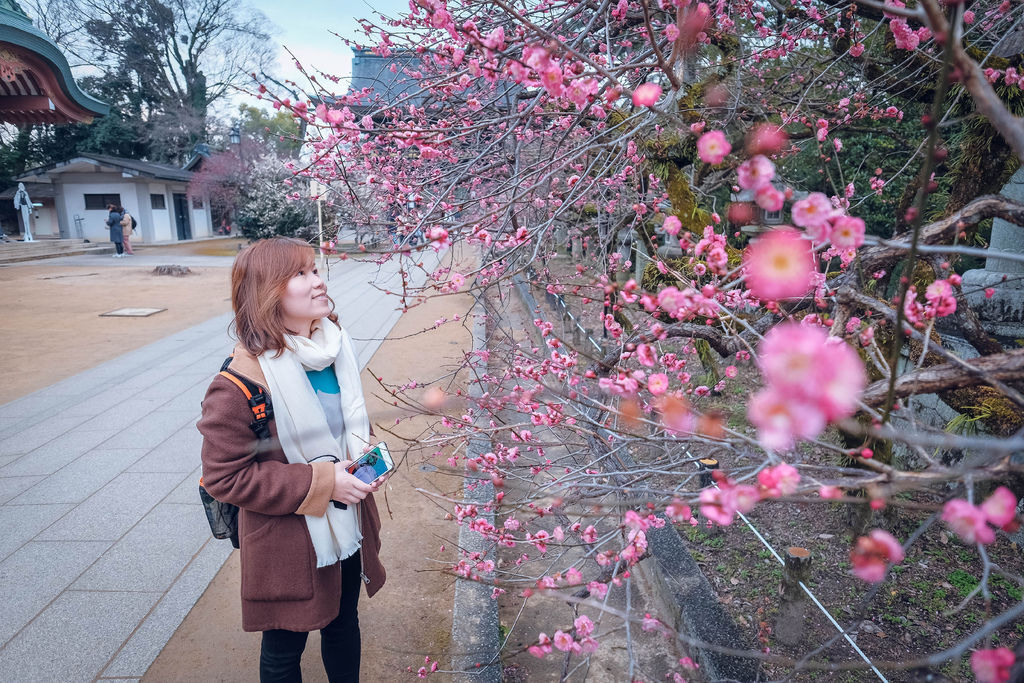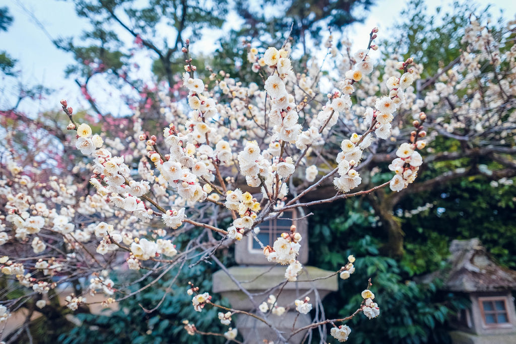2月正值梅花盛開所以立刻換了一下行程,拎著我的旅伴就往北野天滿宮的梅花祭去。