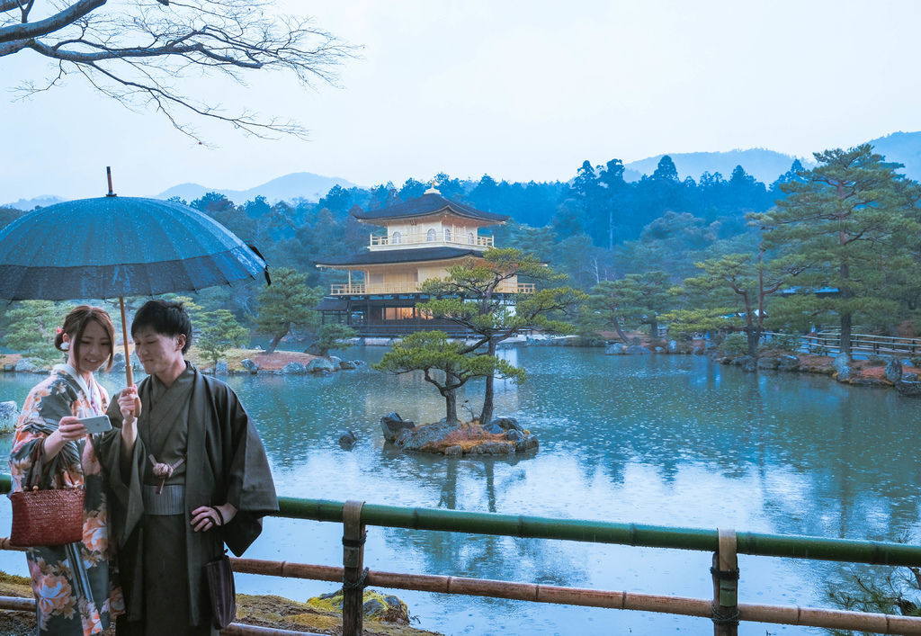 雨下的天氣濛濛的,眼前穿和服的情侶也是與我們一同前來的遊客,順手留念了幾張。